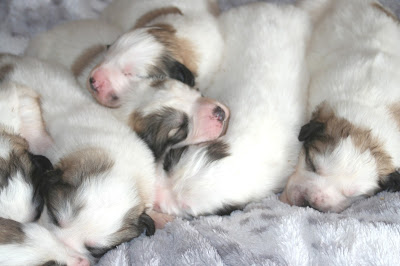 As you can see "King" is the best Dad and baby-sitter in the world. The pups and kids take turns playing and lounging around with him, until he hears or smells something he doesn't like and bolts off with out warning.